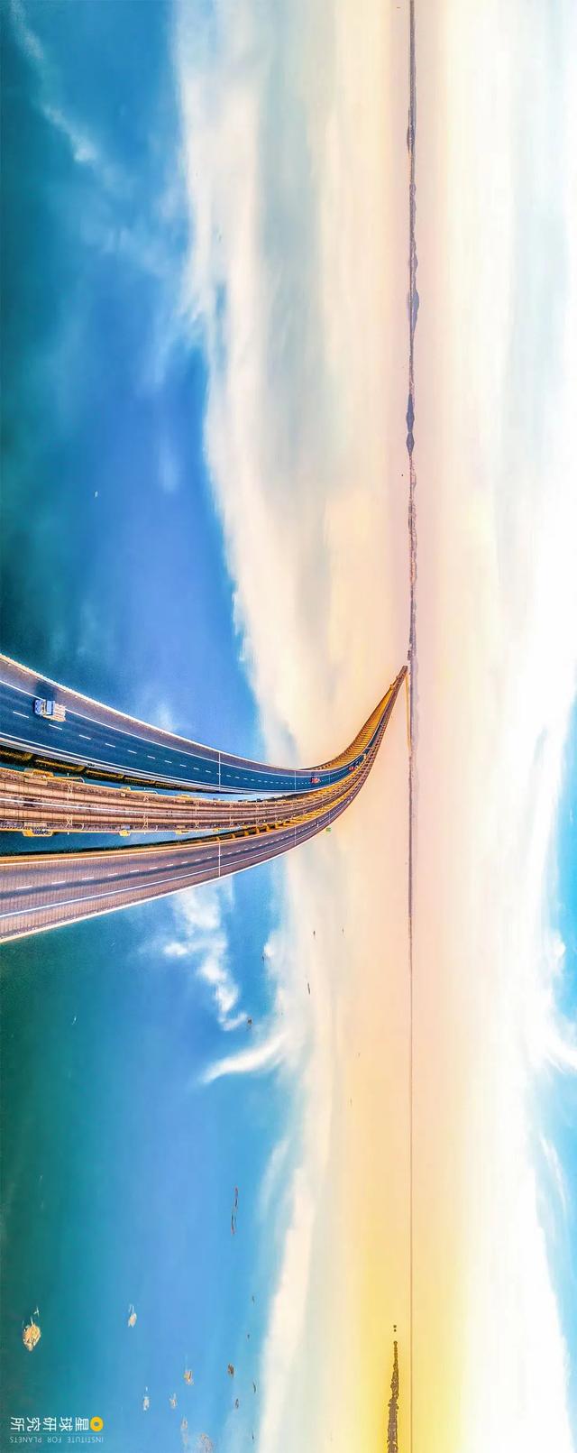 (请横屏观看,江苏南京的淡水湖石臼湖,地铁S9号线和宁高公路特大桥横跨湖面,水光接天,摄影师@熊伟)