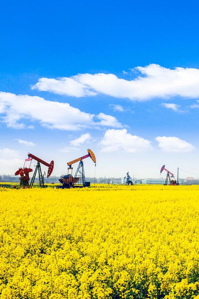 (湖北潜江油菜花田里的抽油机,江汉油田、中原油田等的形成与内陆盐湖有很大关系,图片来源@汇图网)