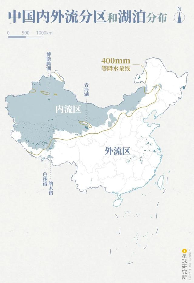(中国内外流分区和湖泊分布,制图@巩向杰&郑伯容/星球研究所)