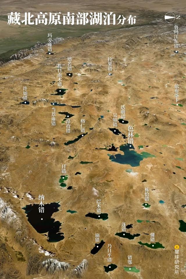 (藏北高原南部湖泊分布,制图@巩向杰&郑伯容/星球研究所)