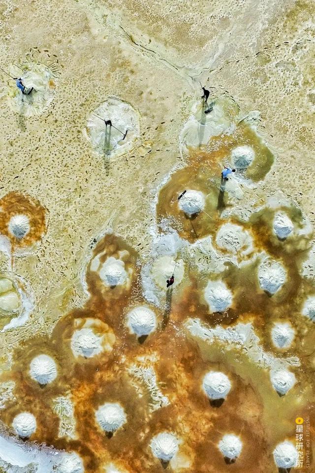 (陕西西北的定边盐湖,工人们在采盐,摄影师@王警)