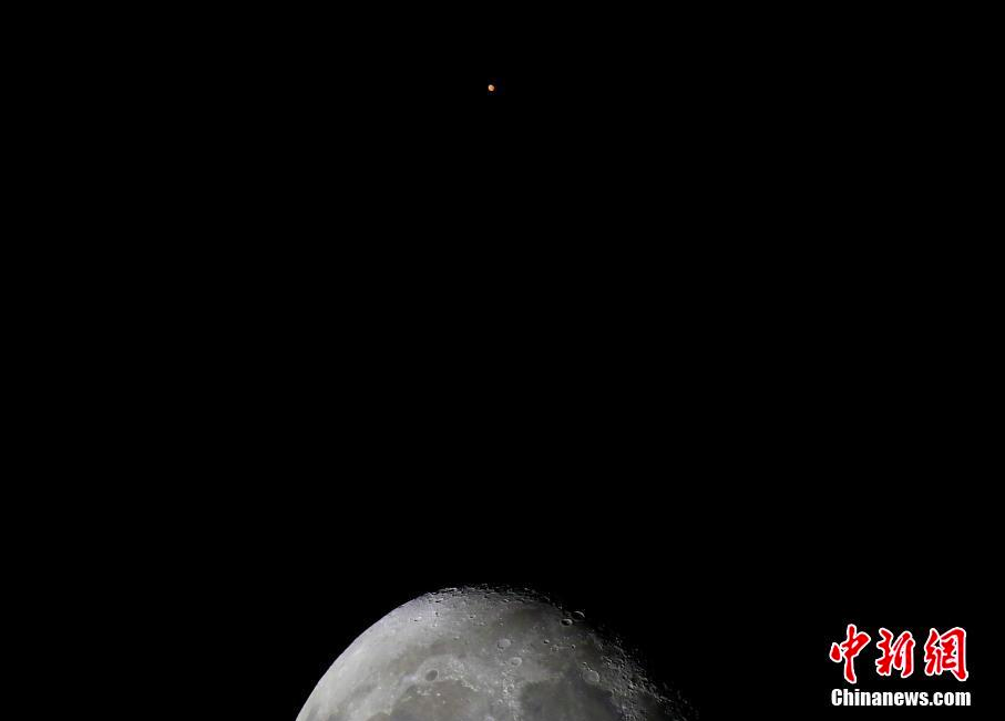 当地时间9月6日,美国纽约,火星出现在月亮上方。图片来源:中国新闻网