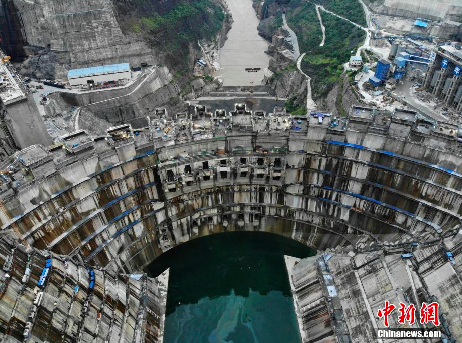 ●9月8日傍晚,世界目前在建最大水电站白鹤滩水电站建设如火如荼。白鹤滩水电站位于四川省宁南县和云南省巧家县交界处,该电站装机容量1600万千瓦,建成后是仅次于三峡工程的世界第二大水电站。(来源:中国新闻网)