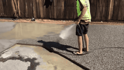 在施工的时候,有时工人还会在没有凝固的水泥表面喷糖水,然后再把表层冲掉,露出下面的石砾,制造出粗糙沧桑的哑光效果。