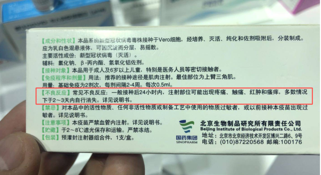 中国生物北京所疫苗在外包装注明了接种后可能出现的不良反应:一般接种后24小时内,注射部位可能出现疼痛、触痛、红肿和瘙痒,多数情况下于2~3天内自行消失。其他两款新冠疫苗的不良反应在外包装上没有详细体现,但目前的临床数据显示,两款观察到的不良反应主要以注射部位局部疼痛为主,其次为疲劳乏力、局部肿胀等。这些反应都是一过性的,只观察到极少数发热和过敏反应,无严重不良反应,目前疫苗的安全性还是可以放心的。(本文经过百科名医医学团队及专家审核)