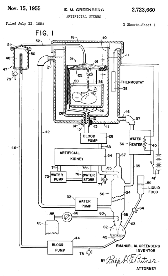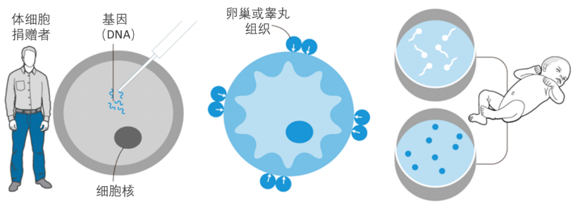 赫胥黎在发表这本书时,绝对想不到,不到50年后,1978年,就出现了试管婴儿技术以及蓬勃发展的生殖医学产业。好在,虽然各种技术包括生物技术和辅助生殖技术在不断发展,但目前各国的伦理和法规都在向促进科技向善、以人为本的方向发展,因此,赫胥黎小说里的阶级对立的场景大概率是不会发生的。不过,生殖医学也走到了新的路口,那就是人造精子、人造卵子、人工子宫技术的发展。一枚正常的种子才能在土壤中生根发芽,正常的怀孕需要无遗传缺陷的胚胎和具有容受性的子宫。但总有一部分比例的人群,因为先天发育或后天疾病的影响,无法产生健康的卵子/精子,或者女方的子宫无法给胚胎发育提供支持。这时候,人造卵子/精子、人工子宫就给他们带来了希望。生殖医学的发展之快出乎人们意料,一些科学家用各种办法尝试制造卵子/精子,其中,有不少实验取得了成功。2004年,东京农业大学的Tomohiro Kono把小鼠卵子染色体改造成精子形态,使正常小鼠的卵子受精,从而培育出了一只没有“父亲”的小鼠。与此相对,2010年,美国MD安德森癌症中心的Richard R. Berhringer用干细胞技术获得了来自两只雄鼠的“后代”小鼠。2012 年,日本科学家 Mitinori Saitou将小鼠皮肤细胞体外诱导成人工精子,这是人类首次在体外培育出人工精子。这些精子也能够使卵子成功受精,随后生出健康的小鼠。2016 年,日本科学家林克彦(Katsuhiko Hayashi)将小鼠的皮肤细胞体外诱导成为人工卵子,并成功受精发育成健康小鼠,这是世界上首次完全体外诱导出人工卵子。图源:MACMILLIAN PUBLISHER LTD. 而关于人造子宫,上世纪50年代就有人发表了一个模型的专利(下图),模型中布满了输送养分的管道。2017年,一种叫生物袋(biobag)的子宫模型进入公众视野,它也成功地让早产的羊胎在里面继续发育了4周,这一技术目前还在完善当中。除了上述人造精子或卵子技术,克隆技术也为“人造人”提供了可能,但是克隆人技术不仅违反社会伦理道德,还可能带来复杂的后果,因此,各个国家明令禁止把克隆技术应用于人类。克隆人不可能出现,但动物克隆已经走过了近70年的历史:1952年美国科学家R. Briggs和T.King用核移植技术产生了克隆蛙,1963年我国科学家童第周克隆了鲤鱼,1981年 Karl Illmenese和 Peter Hope完成了克隆小鼠,1996年克隆羊明星多莉在英国爱丁堡大学诞生,1998年孟励等人在美国俄勒冈健康科学大学做出了克隆猴。还有许多其它已被克隆的动物,如猪、牛、兔、马、狗等。这些技术进展从皮肤细胞开始,利用细胞诱导分化技术和干细胞技术,加上生殖工程,让人类培育出了越来越多的动物。这一切都令人难以置信,但生殖医学的快速发展让这些技术得以出现并被广泛应用。 图3. 从体细胞到胎儿的路线图。来源于正常人的体细胞如皮肤细胞,经过分化诱导和卵巢或睾丸组织提供的细胞内环境,变成成熟的卵子或精子,卵子或精子经过体外受精变成胚胎,移植到子宫后可以诞生出婴儿。图源:Guardian graphic.因为打破了人类自然受精程序,“人造人”技术一直存在着伦理上的争议。例如,人类是否在扮演“上帝”的角色,通过试管婴儿技术出生的孩子能和自然生育孩子享有一样的社会权益吗?自然人和“人造人”共同生活在一起时,他们的社会地位是否平等?假以时日,当“人造人”的人口大于自然人时,会不会出现《美丽新世界》中的歧视和压迫?对于这些问题,我们还无法给出答案。