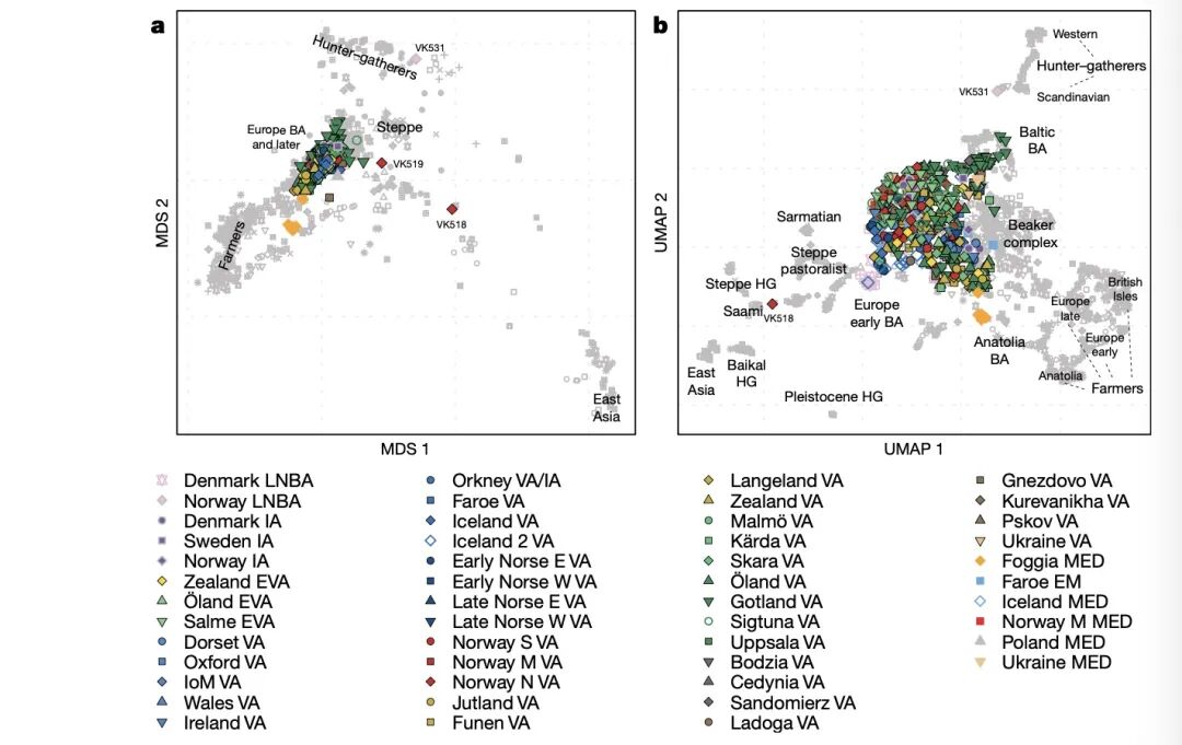 “维京时代”样本的遗传结构。图源:《自然》在线版