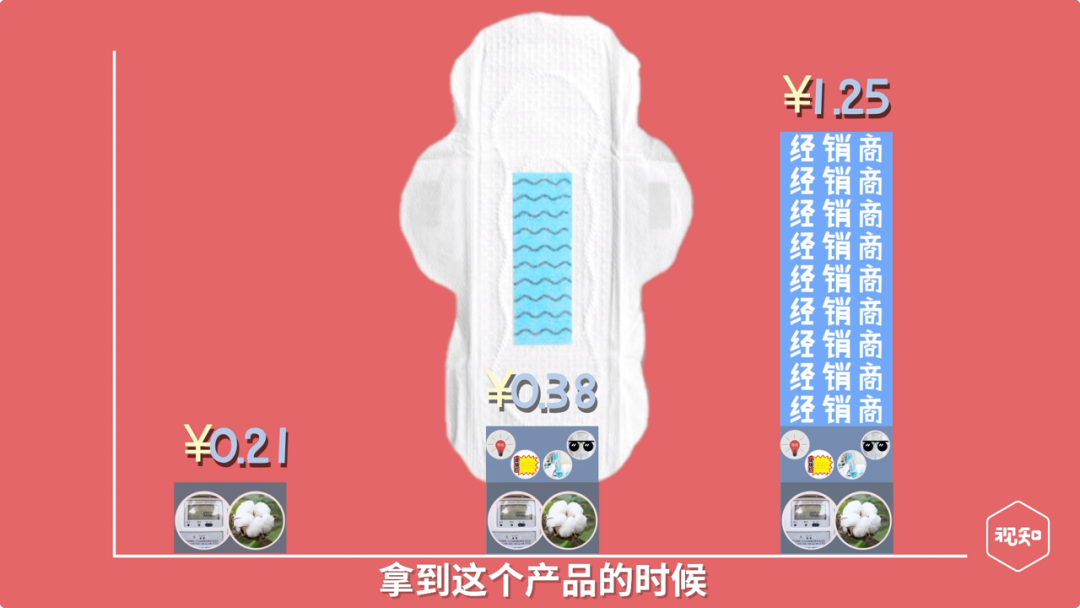 我们看一下一张卫生巾的价格拆分开来,钱到底花在了什么上面。