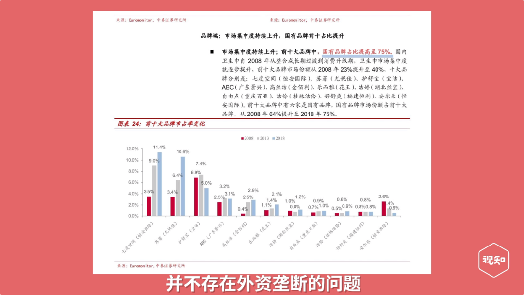 有网友认为超市里的卫生巾之所以贵,是因为外资企业垄断了市场,这是真的吗?实际上国内品牌占市场份额75%,并不存在外资垄断。