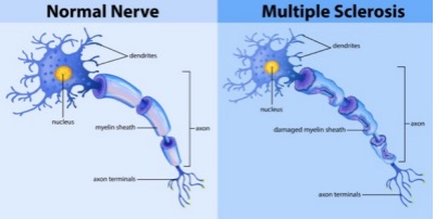 多发性硬化症(MS)就是由于神经细胞轴突的髓鞘受损,引起了电信号无法正常完成传输。