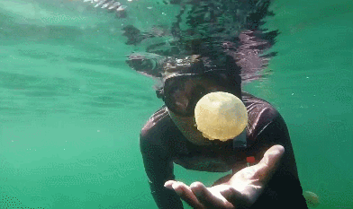 2、不要在水中吐泡泡,可能会直接摧毁水母