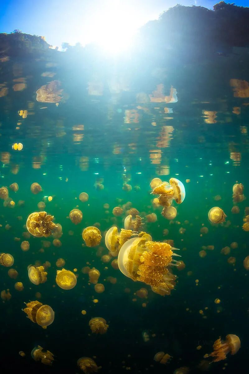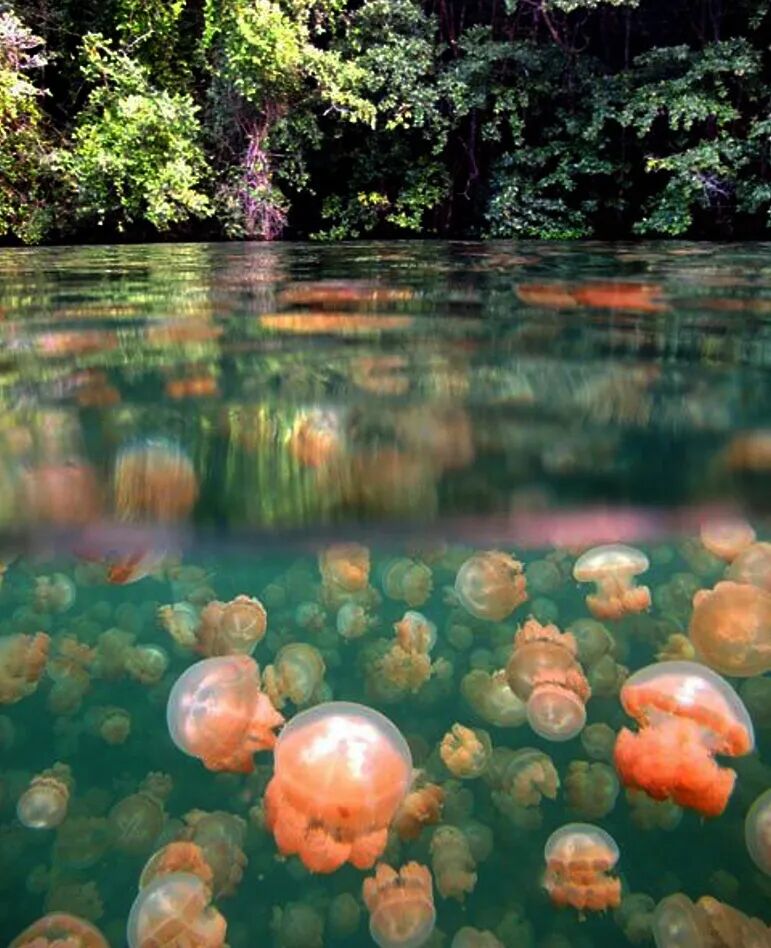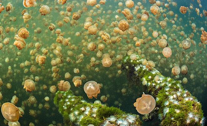 由于湖水长期近乎与外界隔离,这些水母的天敌们完全消失,于是它们也逐渐“遗失”了祖先用以防卫自身的武器——身体内的毒素,这样帕劳水母湖就拥有了世界上罕见的无毒水母。