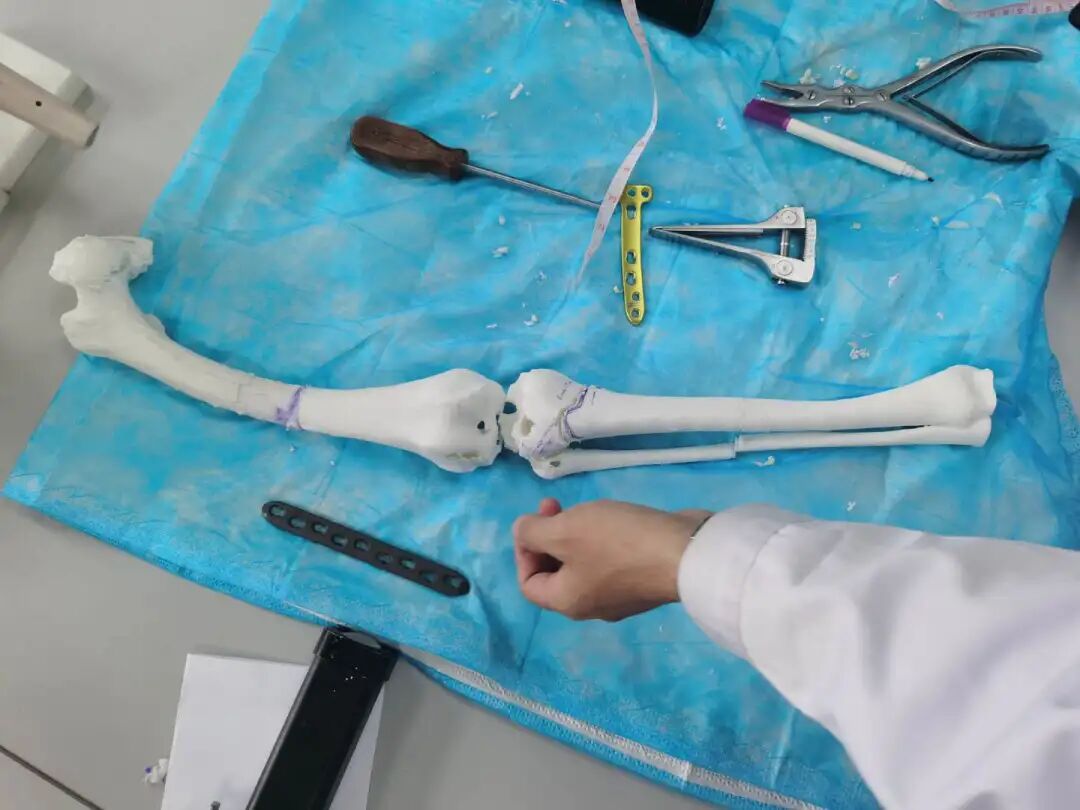 然而,林芝市人民医院地处偏远,没有3D打印设备。张荣凯联系南方医科大学第三附属医院的同事,经协调,林芝的手术团队将琼吉的CT检查数据传给广东省科学院新材料研究所,由研究所的博士闫星辰打印出一个与琼吉1∶1的股骨、胫骨模型,再寄到林芝。