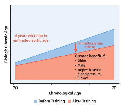 图1 6个月的马拉松训练前后,主动脉年轻了4岁