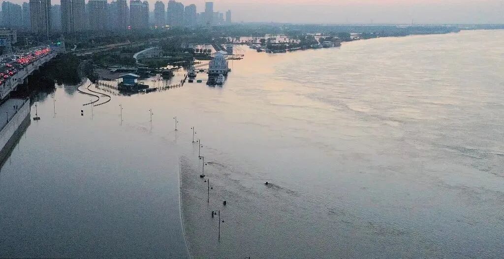 9月23日,黑龙江省哈尔滨市,受上游来水影响,松花江沿江低处被淹,友谊西路下面的江滩被水淹没大半。