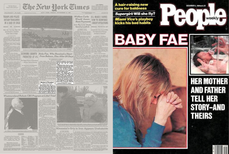 类似的婴幼儿心脏移植手术也从未成功过(实际上,能在屈指可数的心脏捐献者中找到配型就已经难如登天了)。 正常人类心脏,史蒂芬妮的心脏,狒狒的心脏对比图史蒂芬妮的母亲沉浸在极度的悲痛之中,但还是逐渐接受了现实。在史蒂芬妮被母亲带回家中等待死亡时,电话突然响起。是洛马琳达大学的伦纳德·贝利医生(Dr Leonard L. Bailey)的助手打来的,他告诉这位母亲,小史蒂芬妮或许有救。计划就是:将小狒狒的心脏移植给史蒂芬妮。医生的赌局 由于一时无法接受这种疯狂的想法,母亲的惊喜立刻转变成了怀疑。实际上,贝利医生本人最清楚这样做的风险。但在这场与死神的赌局之中,他也握有自己的筹码。 70年代,作为一名胸外科和心血管外科医生,贝利医生见证了太多死于左心发育不全综合征的新生儿。贝利为此感到难过和困扰,因为他只能眼睁睁看着婴儿死去。他认为,这些不幸的孩子需要的只是一颗新的心脏。1976年,贝利医生回到母校洛马琳达大学,在医学院任副教授。之后几年里,他在动物幼崽身上进行了200多次移植实验,以评估在哺乳动物上进行器官移植的可行性。
