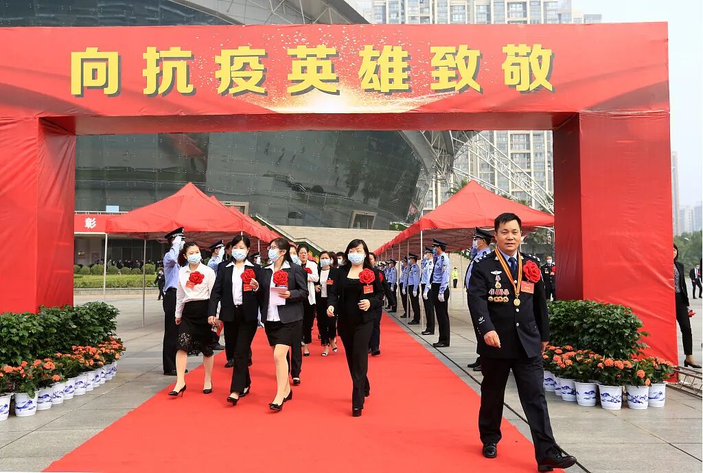 9月26日,湖北省襄阳市隆重召开抗击新冠肺炎疫情表彰大会,抗疫英雄佩戴大红花受表彰。