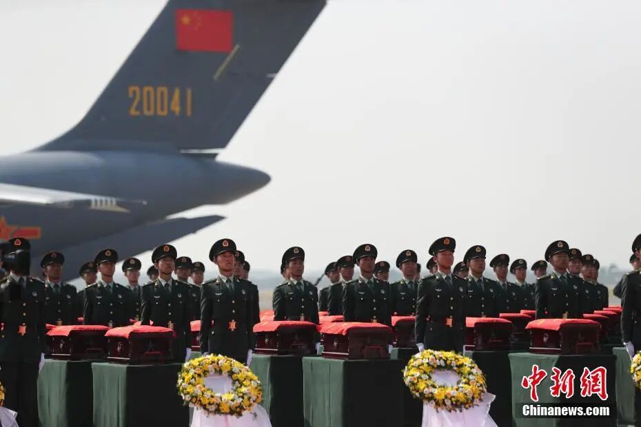 ● 从2014年到2019年,先后有599位在韩中国人民志愿军烈士的遗骸回到祖国。9月27日,第七批117位在韩志愿军烈士的遗骸归国。编号01运-20接志愿军烈士回家,机场水门最高礼遇迎接……英雄,祖国接您回家!(来源:中国军网)