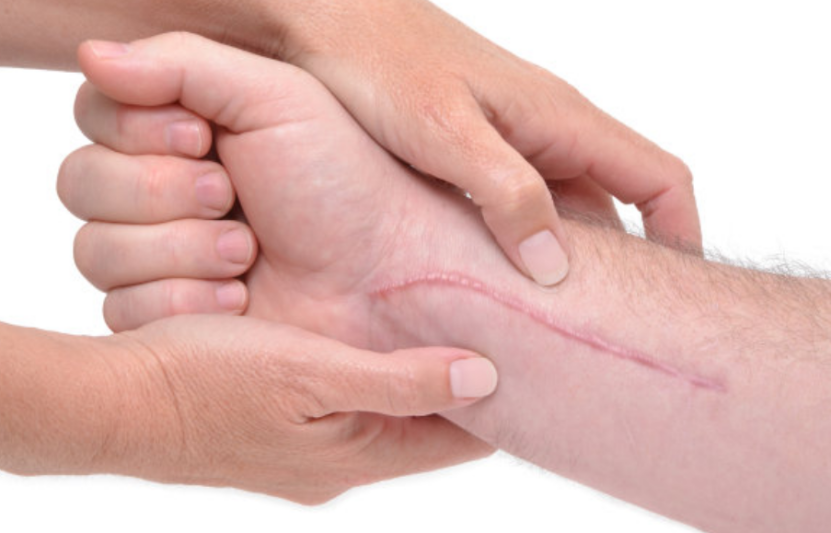 图源:https://kknews.cc/fashion/xvpa4e9.html不过现实生活中,也会有人即使受伤也不容易留下疤痕,那么人的皮肤上为什么会留下痘印或者疤痕?为什么有的人就不怎么留疤呢?疤痕通常是皮肤软组织受到伤害后自主修复所形成。不过既然都修复了咋还留点痕迹呢?这是因为修复后所形成的皮肤组织和正常的皮肤是有所不同的。现在让我们在显微镜下一起来观察看看二者有什么不同。在显微镜下,能看到人的健康皮肤里有很多发挥不同功能的细胞。这些松散的细胞由胶原蛋白像绳子一样紧紧地绑在一起,并形成紧密的皮肤组织,这也让细胞间能够传输需要的营养物质和信息。当皮肤受伤时,这些连接细胞的绳子也就随之断开,从而形成伤口。蓝色的线表示胶原蛋白,裂缝表示伤口 图片来源:Ted这时候,皮肤为了愈合,会在伤口也就是绳子断裂的地方由成纤维细胞形成很多新的绳子,即胶原蛋白,它们会尝试把断裂的地方连起来。虽然通过这种方式伤口可以愈合,但是健康皮肤中胶原蛋白的排列往往规整又复杂,而修复后的胶原蛋白只能单向简单排列。这导致新形成的皮肤延展性和敏感度都不如从前。修复后皮肤的低延展性也导致其外表看着与正常皮肤不同,也就是我们看到的疤痕。而更糟糕的是,伤口的修复可能会用力过猛,产生过量的胶原蛋白。这些过量的胶原蛋白会影响皮肤正常的功能,比如出汗生长毛发,甚至使得皮肤增生突起,让疤痕看起来更加明显。伤口修复过程中过量胶原蛋白积累导致增生形成肥厚疤痕 图源:Veer图库伤疤其实是生物进化的结果,无脊椎动物比如章鱼蜗牛等受伤后可以按照原样修复损伤,而脊椎动物为了能更快地修复伤口,进化出伤疤这种机制。在我们看来非常可恶的伤疤,对于在野外生活的动物们却有重要的意义,因为伤疤能让伤口快速的闭合,从而减少发炎率,进而提高存活能力。这种进化同样也体现在人类胚胎发育中,人类的早期胚胎受伤后是可以完全按照原样修复的,在之后的发育过程中才逐渐出现伤疤这种修复方式。胚胎发育的过程重现了生物进化的历程,这也从侧面说明了伤疤修复是进化的产物。涡虫在受伤后可以完全修复自己,甚至被切成几段就会成长为几个新的个体图源:https://www.peekme.cc/post/1005627由于每个人伤疤修复启动的强度不同,会出现有的人容易留疤,而有的人不容易留疤,这些性状也可以遗传给下一代。例如不同人种之间就存在明显的差异,黑种人、黄种人比白人更容易留下疤痕。对于不同年龄的人来说,疤痕的形成也是有所不同的。研究显示,老年人比青壮年更容易长疤,这是由于老年人身体里引起伤疤修复的炎症和细胞因子与人类胚胎早期的表达水平很像。即使在我们自己身体的不同部位,伤疤的形成也存在差异。在三角肌和胸骨区域的伤口更容易留下疤痕,而在口腔内的伤口最容易完全修复不留痕迹。科学家们也在研究这些伤疤产生的不同机制,帮助我们开发可以抑制伤疤产生的药物。更易产生疤痕的三角肌和胸肌区域 图片来源:https://kknews.cc/health/axvg2bv.html根据形状的不同,伤疤可以分成很多类型。最常见的是青春痘造成的痘坑,这种伤疤被叫做萎缩性伤疤,成因主要是伤口很小,修复没有产生很多胶原蛋白导致产生凹陷。而小手术造成的细小伤口容易产生细小发白的拉伸疤痕,妊娠纹和肥胖纹也属于拉伸疤痕。这种疤痕主要来自皮肤深层的伤口:最外面的皮肤很快修复没有受损,而深层的皮肤则由于肥胖怀孕等张力过大被拉出伤口。正常的伤疤都会在两到三年内逐渐变小,但是还有一种伤疤则会随着时间越变越大。这种伤疤从一个突起的小伤疤开始延展,最后长大到蟹足状的红肿,所以被叫做蟹足肿。之所以会出现这种情况,主要是由于在伤口修复后,成纤维细胞还在不断分泌胶原蛋白进行修复,导致增生越长越大。这种增生的组织由于是由成纤维细胞分泌胶原蛋白产生,因此也被称作纤维化。纤维化这个词大家肯定都有所耳闻,比如肺纤维化、心脏纤维化等疾病,而这些疾病产生的原因和疤痕相似,即为了修复器官中出现的伤口,器官会分泌胶原蛋白,产生的纤维化伤疤让器官像皮肤一样延展性等特征变差,最终导致器官出现系列问题。所以不要小瞧小小的伤疤,它们可能造成很大的问题哦。三角肌区域的蟹足肿 图片来源:https://health.businessweekly.com.tw/AArticle.aspx?id=ARTL000117611对于追求美观的人来说,各种治疗疤痕的药物成了他们的福音。常见的治疗疤痕的药物或是包含洋葱提取物、维生素E、硅胶等成分、或是通过疤痕按摩、弹力胶布等消除疤痕。目前有研究对各种药物的疗效进行了研究,研究中在疤痕上涂不同的药物,并与涂凡士林软膏或者不处理的对照组进行对比,观察各药物的疗效。洋葱提取物最开始被用于疤痕治疗主要由于科学家们发现它们体外可以抑制成纤维细胞产生胶原蛋白,从而推测可以减小由于胶原蛋白产生的疤痕。但是在实际的实验过程中,研究者发现洋葱提取物软膏和凡士林对照组患者伤疤没有明显区别,甚至部分患者伤口由于洋葱的刺激产生过敏反应。和洋葱提取物类似,维生素E被认为有美容效果,并且可以抑制发炎进而抑制疤痕产生。然而实际实验中,不论是外观上,还是多普勒成像实验中,都显示它没有明显效果。硅胶被用作治疗伤疤,主要是因为它质地柔软且富含水分,被认为可以