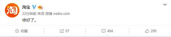 当时,有网友表示,以为是网络问题,Wi-Fi、移动数据网络连续换不行, 重启手机不行,换手机和运营商不行。20 分钟左右后,淘宝在官方微博发布了一句“修好了”,证实了确实是出现了服务器崩溃的故障。