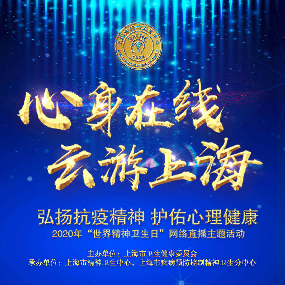 “心身在线,云游上海”——2020年“世界精神卫生日”网络直播主题活动将在10月10日上午10:00隆重开始。届时将有市卫健委领导发出倡导,弘扬抗议精神,护佑心理健康;在主题论坛阶段,来自上海市疾病预防控制精神卫生分中心、上海市妇幼保健中心、上海市健康促进中心、上海市学生心理健康教育发展中心、中国疾病预防控制中心慢病中心等专家将从各自领域谈心理健康建设怎么做。来自全市16个区精神卫生中心的主持人将带领大家“云游上海”,请各位观众务必“心身在线”。