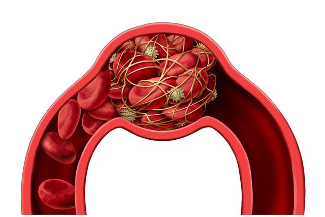 但是有些斑块不会老老实实地慢慢长大,它们本身可能很不稳定,在血压剧烈波动、动脉痉挛等诱因下,斑块就有可能发生破溃。斑块的破溃表面会刺激血液中的血小板发生聚集,进而血小板会激活血液中的纤维蛋白凝结,形成一张“网”,把血细胞“拴”在一起,形成血栓。会造成动脉堵塞,从而发生心梗、脑梗等血栓性疾病。