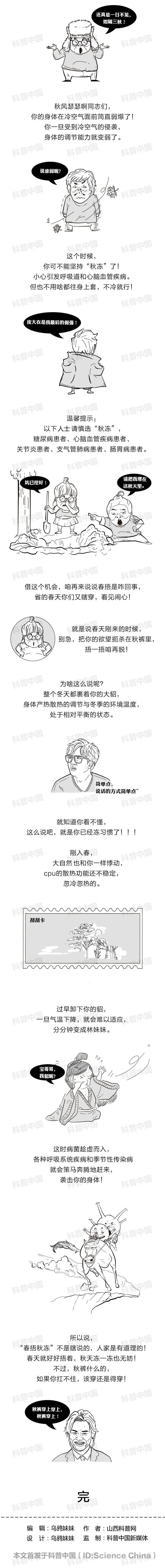 春捂秋冻,是有一定道理的,但不是一成不变的。秋冻不等于“冷了也不加衣服”,而是要以自己本身感到舒适为主。