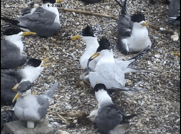 成年中华凤头燕鸥正在给出生不久的雏鸟喂鱼 | 铁墩岛监控视频
