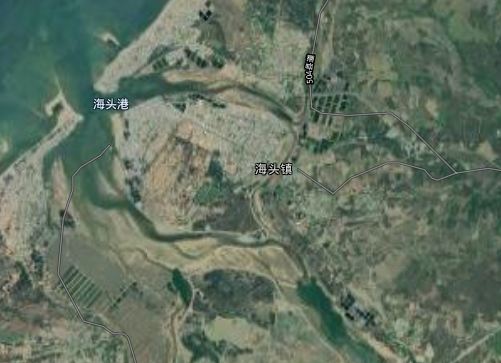 海南省儋州市海头镇港口,滩涂上红树林已严重退化 | 谷歌地图