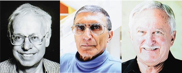2015年诺贝尔化学奖得主托马斯·林达尔(左)、阿齐兹·桑贾尔(中)、保罗·莫德里奇(右)