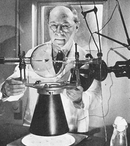 正在对果蝇进行照射实验的穆勒(图片来自网络)