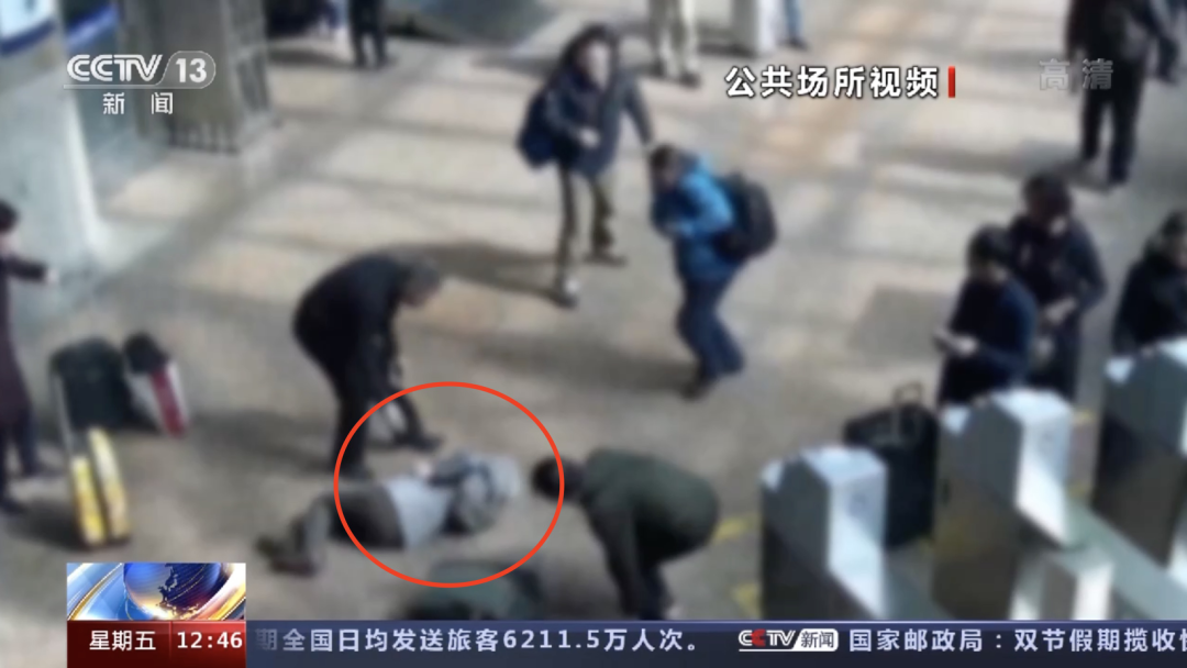 在庭审中,原告方向法庭提交了事发时北京西站二楼进站口一侧的公共场所视频。画面显示,刘先生与王老太太母子二人赶往检票口的时候,被告刘女士出现在画面里。走到检票口后,刘女士正好排在原告刘先生和王老太太的后面。当他们准备进入检票口时,刘先生发现自己走错了位置。于是刘先生赶忙带母亲转身,他向旁边倒退了三步。而他的母亲取回自己的车票之后,转身向后走去,走了四步。就在王老太太迈出第五步时,撞上了刘女士的拉杆箱,重心不稳侧身摔到了地上。 公共场所视频画面显示,当王老太太摔倒后,刘女士立刻将箱子放倒,上前查看她的情况。而老人的儿子刘先生也赶忙回到母亲的身边。