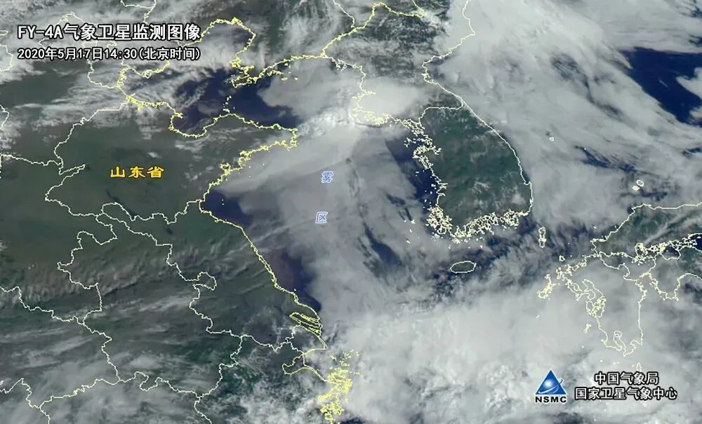 风云四号A星于2020年5月17日监测黄海海域大雾天气