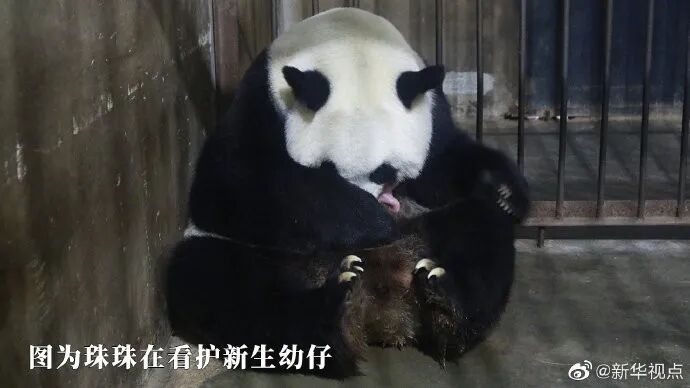 ●记者11日从陕西省林业科学院秦岭大熊猫繁育研究中心了解到,11日上午9时31分,秦岭大熊猫繁育研究中心20岁的雌性大熊猫珠珠产下一雄性幼仔,幼仔体重167克,发育良好,母子平安。这是本年度中心迎来的第3胎第4只大熊猫幼仔。(来源:新华视点)