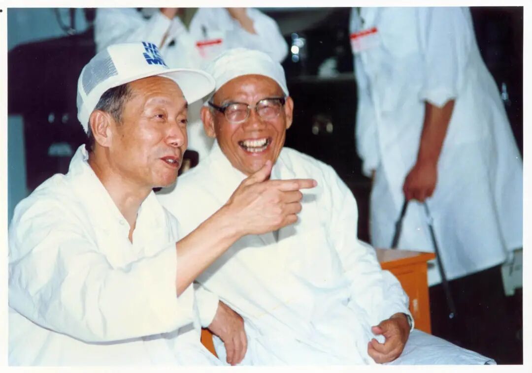 ▲1988年,风云一号工程总师任新民(右)与孙敬良(左)在太原卫星发射中心指挥风云一号A星发射
