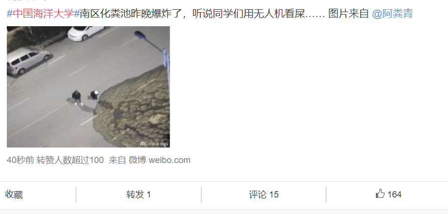 那么昨天夜里,中国海洋大学的化粪池真的爆炸了吗?仔细想一想,我们在今天的新闻中看到的地面是完好无损的(至少物理层面上完好无损),中国海洋大学的同学们也没有听到爆炸的巨响,所以应该可以排除我们上面说的沼气爆炸的情况。