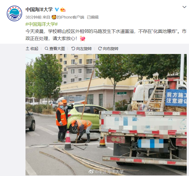 今天上午,中国海洋大学官方也已经回应这次的情况属于“下水道冒溢”,不存在“爆炸”一说。
