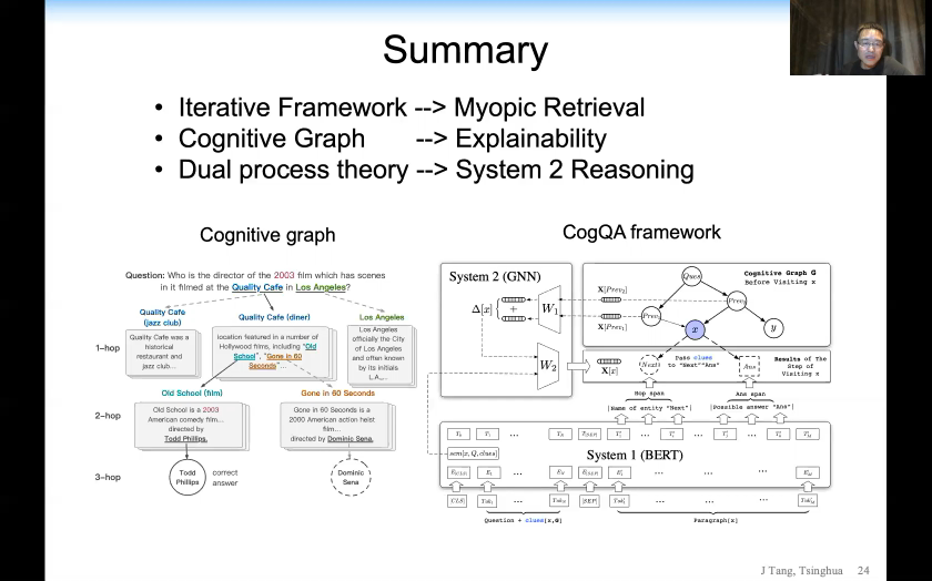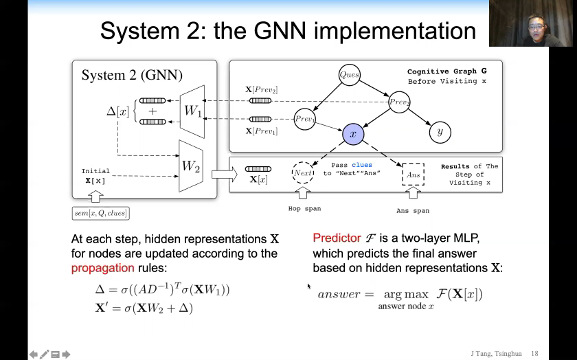 有了System 1以后,可以参考人类的推理过程做System 2。人在拿到相关的信息以后会把这些信息建造成一个知识网络,然后在知识网络的基础上做决策,发现最终要的答案。在这样的思路上,我们可以用图神经网络对所有的信息进行建模,然后决策、判断得到的信息是不是我们所要的。