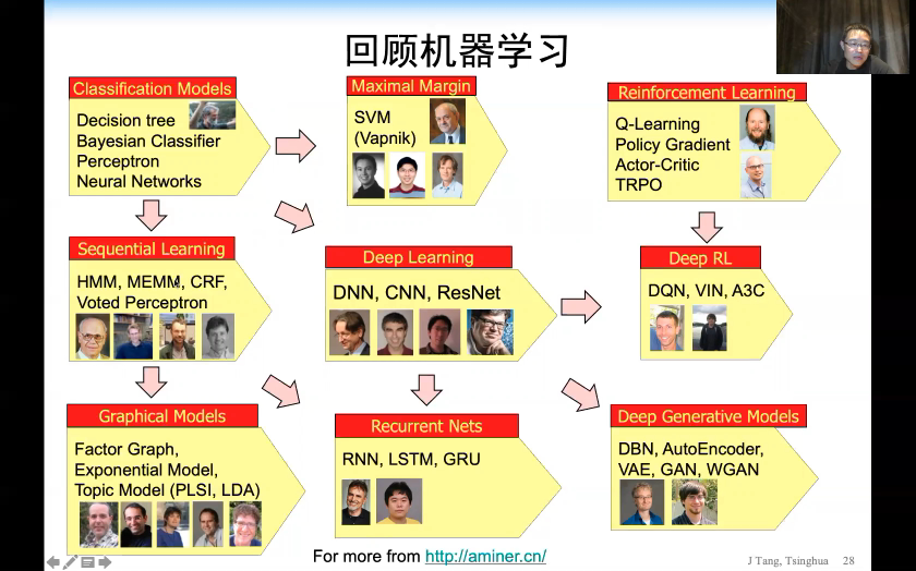 如果我们再回顾一下整个机器学习的发展历程,会梳理出下图所示的内容。