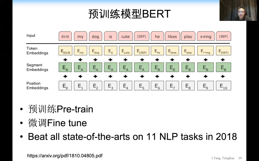 从机器学习发展历程的几个重要的里程碑来看,可以看到基于BERT的预训练模型,其实把机器学习从传统的有监督学习、无监督学习、强化学习这样的模型推到了一个新的高度,也就是通过在大规模数据、大算力的基础上预训练完了以后,可以把它微调到很多子任务上,在子任务上可以不再进行大规模训练就得到很好的效果。这是一个非常重要的一个进展。