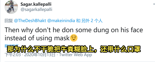 狂丸之前还介绍过印度人用牛粪洗澡,以此给自己加buff,抵抗新型冠状病毒。