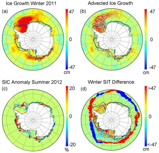 这种现象,使南极的海冰更有能力去经受接下来春季和夏季的漂流与融化。所以到了2012年夏季,仍有很多冰存留下来,造成了当年夏季海冰的正异常。