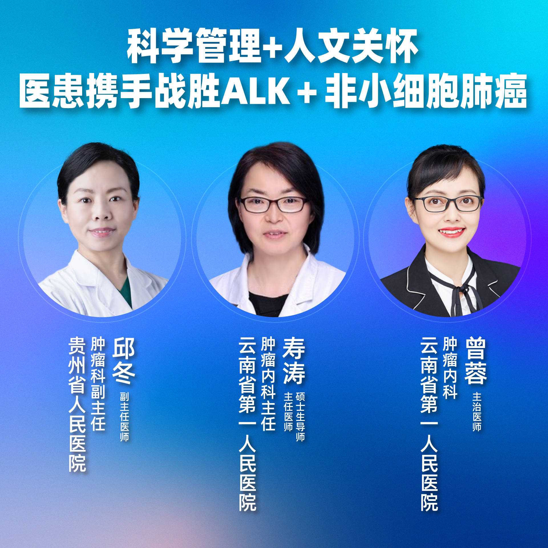 上海报业集团旗下“海上名医”平台,特邀云南省第一人民医院肿瘤内科主任寿涛、贵州省人民医院肿瘤科副主任邱冬、云南省第一人民医院肿瘤内科主治医师曾蓉,共同带来《科学管理+人文关怀——医患携手战胜ALK+非小细胞肺癌》视频直播。