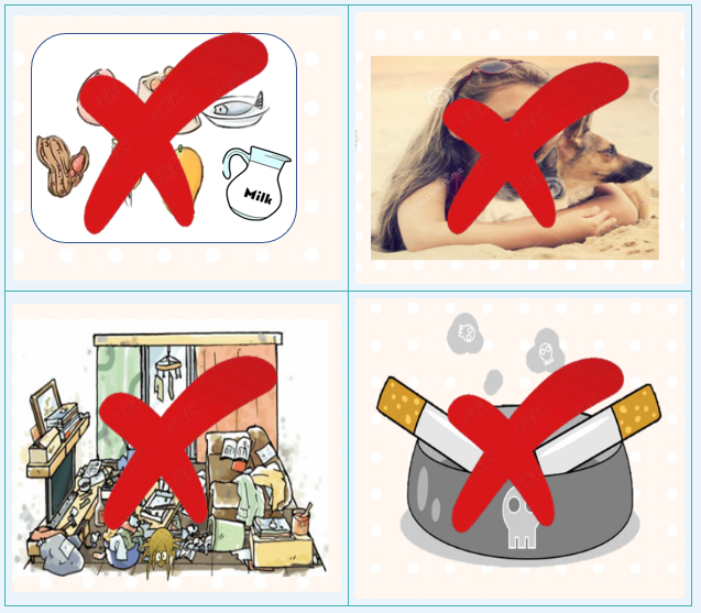 3.居室内陈设简单,不铺地毯,不用羽毛毯,不饲养宠物和栽种开花植物。