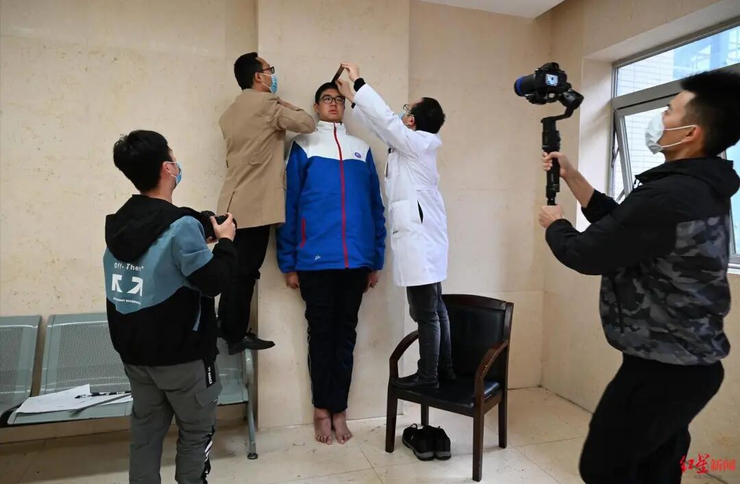 ●四川乐山的初中生小宇,身高已达221厘米。近日,工作人员对小宇现场挑战“最高的青少年(男性)”吉尼斯世界纪录称号进行了认证。此前这项纪录为215.9厘米。生活中,小宇的书桌高1米,鞋子要穿56码。外公和妈妈身高超过一米九。他说,以后想当一名电竞选手。(来源:央视新闻)