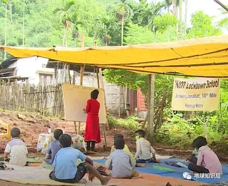 在拥有印度最好教育体系的喀拉拉邦,很多地方为无法上网课的学生在安全地带设置了临时露天教室,到此上课的学生们纷纷表示感觉还不错。