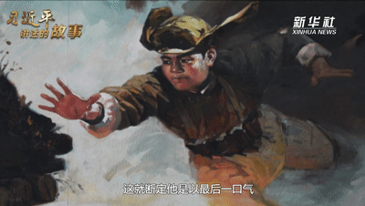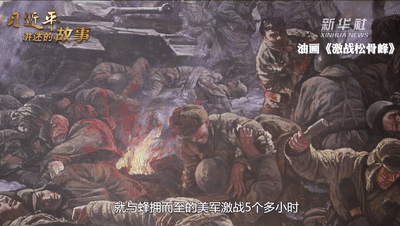 在朝鲜中朝友谊塔纪念厅的巨幅绘画中