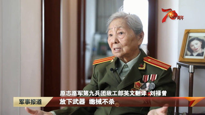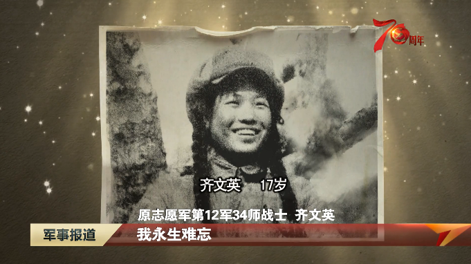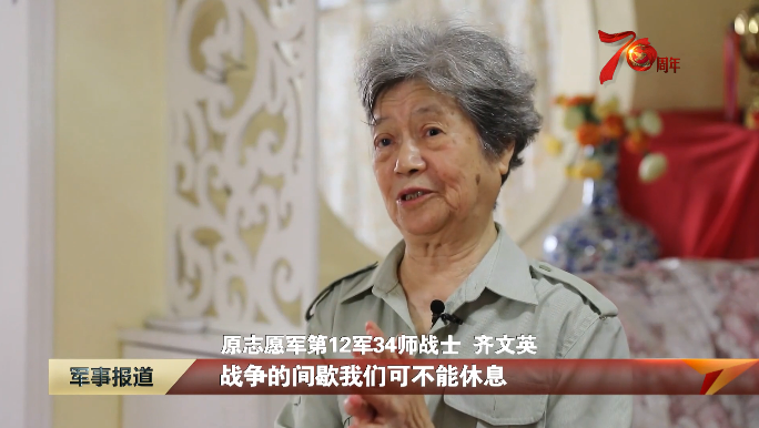 刘无暇,是原中国人民解放军雷达第101营战士。“我们是第一个雷达部队,有12名女同志,到朝鲜去的时候就3名。就想把飞机打下来,那我们是最高兴的事。”刘禄曾,是原志愿军第九兵团敌工部英文翻译,“放下武器,缴械不杀(lay down your arms,no killing),一仗打下来一大堆俘虏,就把他们编编类!”70年前的那段岁月里,有她们对少女情怀的追忆,有对牺牲战友的怀念,也有成为一名志愿军女兵的自豪之情。李娴娟:“我入朝时,就在小本上写着,此番战斗让我的名字不出英雄榜,也上烈士碑。”齐文英:“我永生难忘,在枪林弹雨里求得生存,求得胜利,我想起来我的精神就非常充实,有用不完、使不完的劲。”可青:“现在想起来,那个时代真是可贵、年轻。我现在这个年纪,如果说有需要我的时候,我还敢冲,虽然身体状况不如过去了,但是我还是有这个心!”