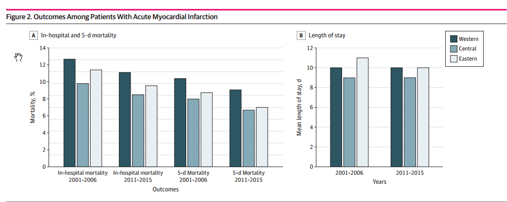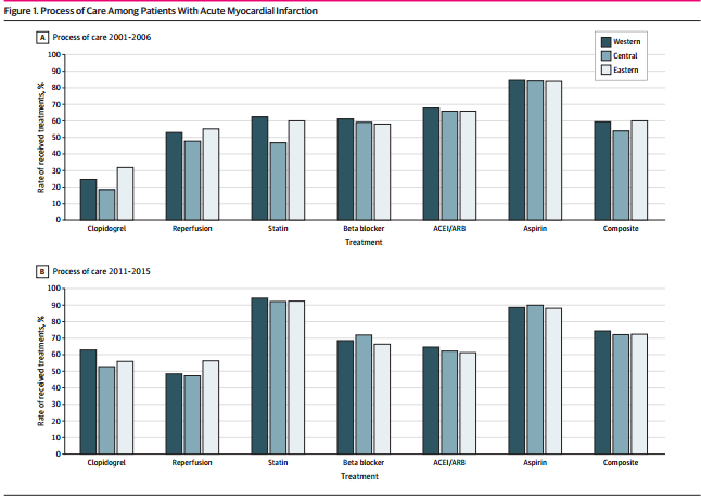 中国东部、中部、西部发展各异,急性心梗的治疗过程和结局有类似的差异吗?
