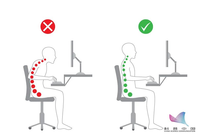不良坐姿会大大增加腰椎和颈椎的受力,在不知不觉中增加了旁边肌肉的负担,最终导致肌肉劳损,让你的身体疲惫不堪,越坐越累。